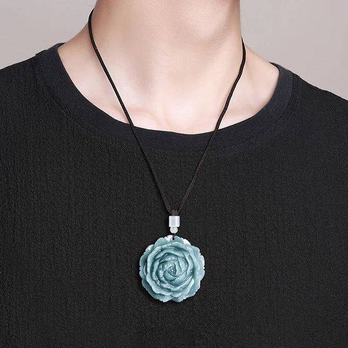 Blue Jadeite Flower Pendant-ToShay.org