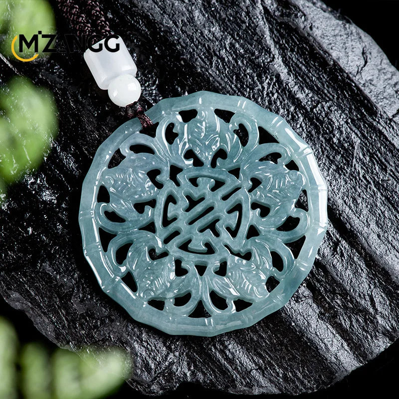 Blue Jadeite Blessings Pendant
