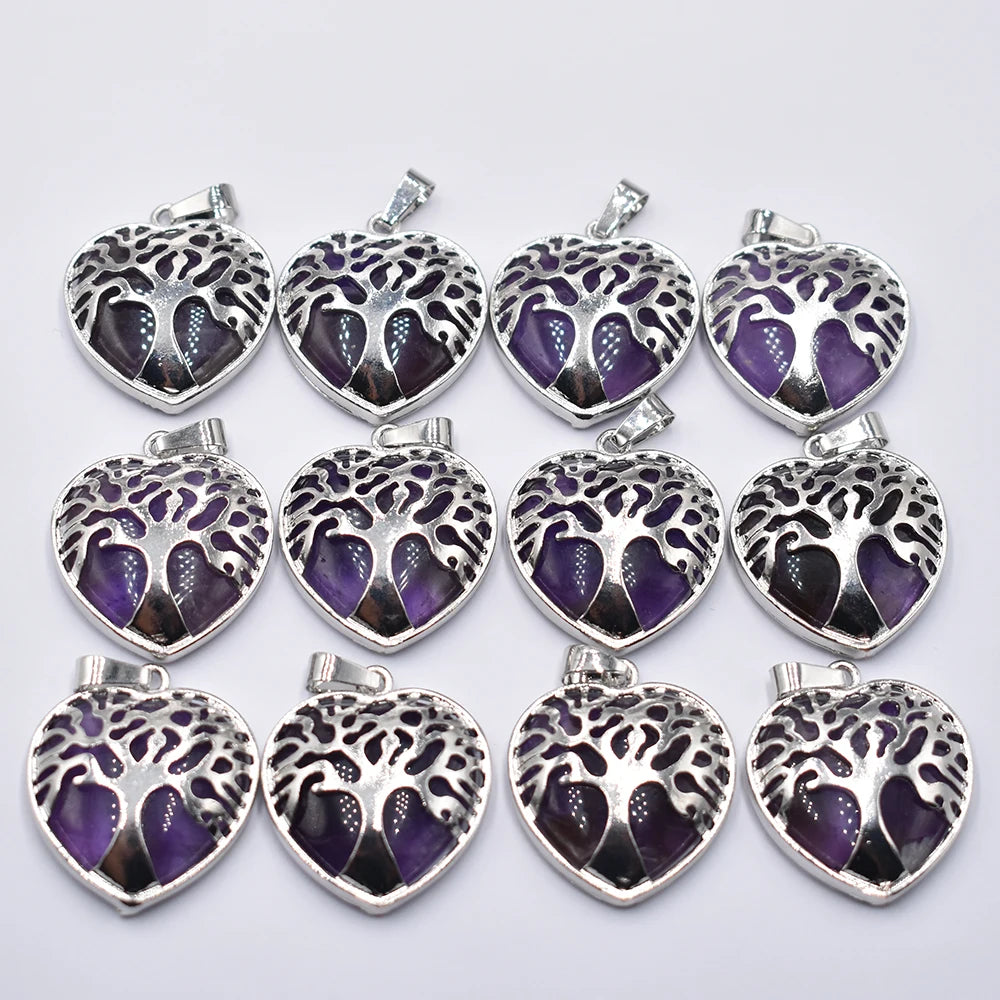 Mixed Crystal Tree Heart Pendants