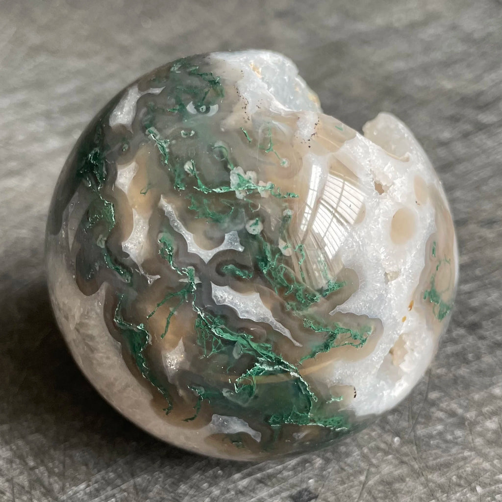 Green Moss Agate Geode Ball-ToShay.org