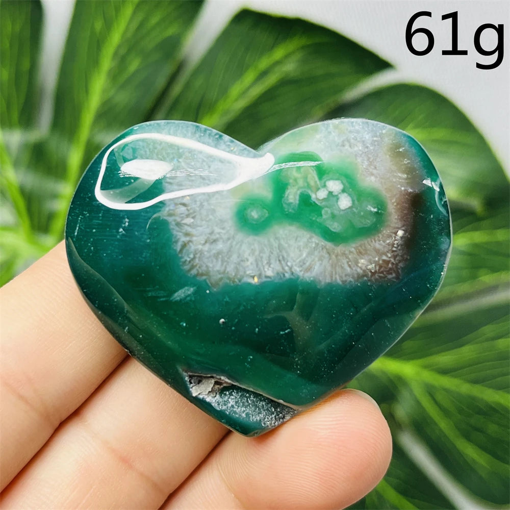 Green Flower Agate Heart