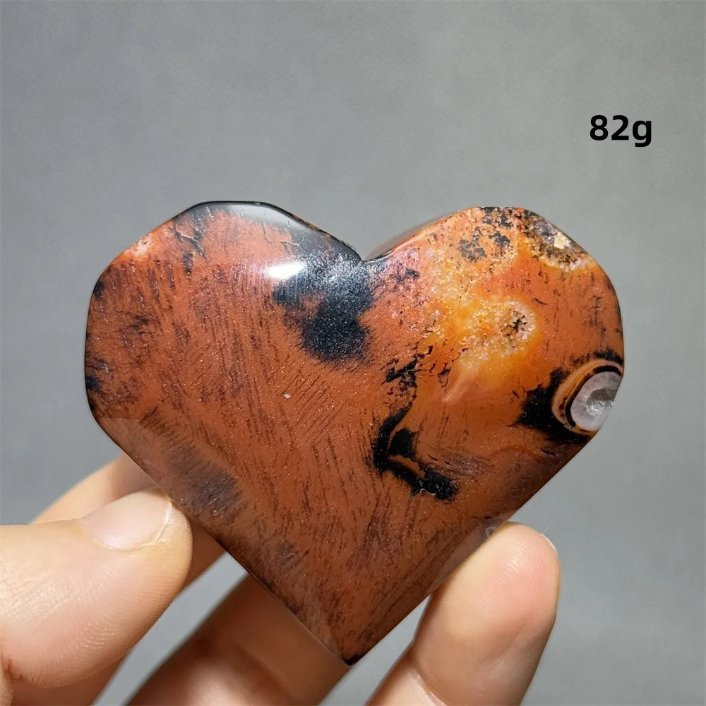 Red Black Striped Agate Heart