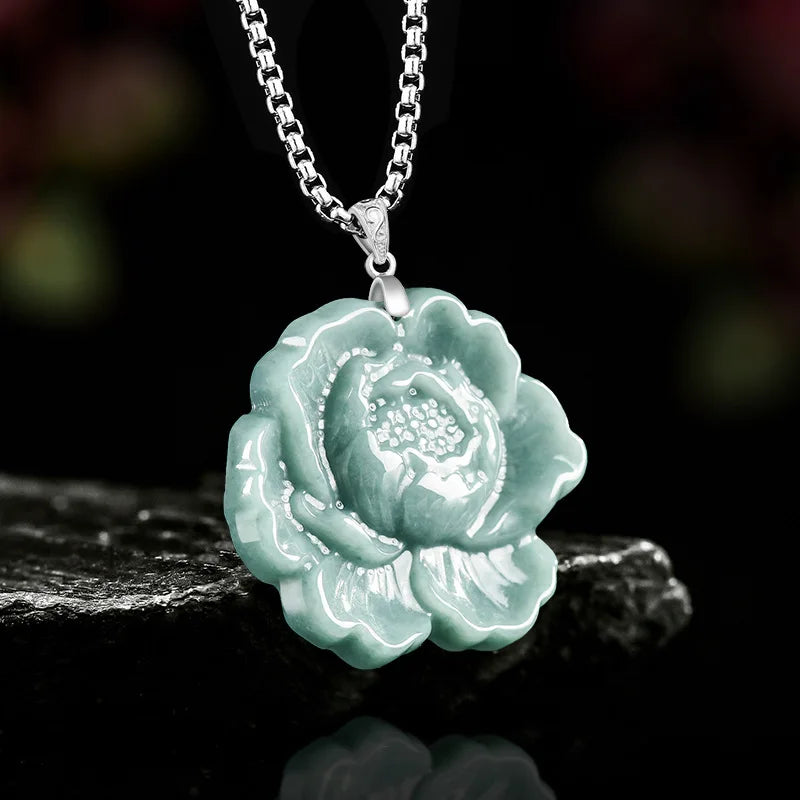 Blue Jade Peony Pendant