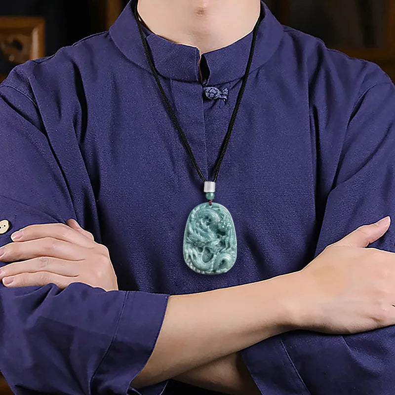 Blue Jadeite Dragon Pendant-ToShay.org