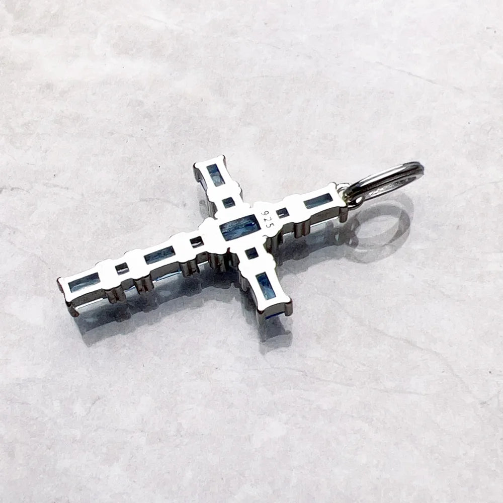 Blue Aquamarine Cross Pendant