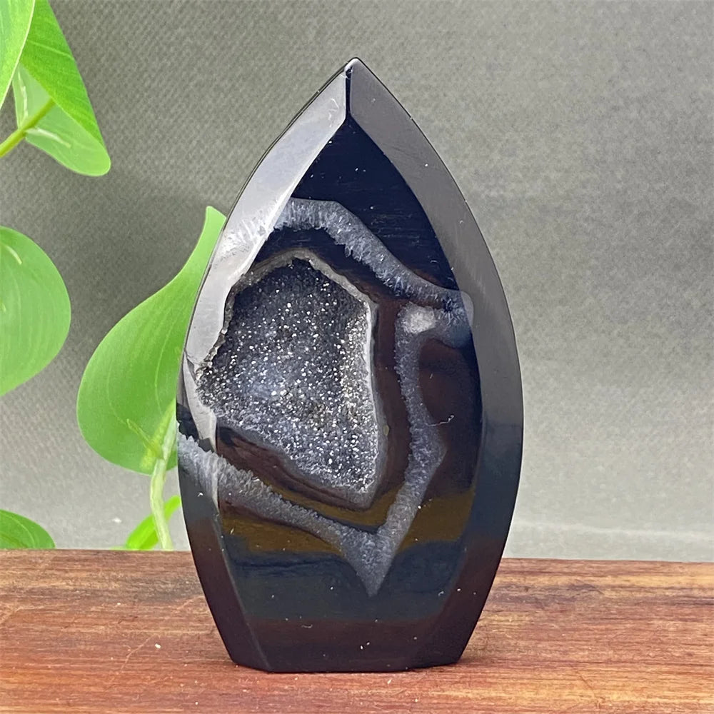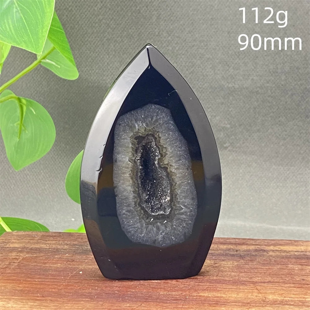 Black Agate Geode Flame