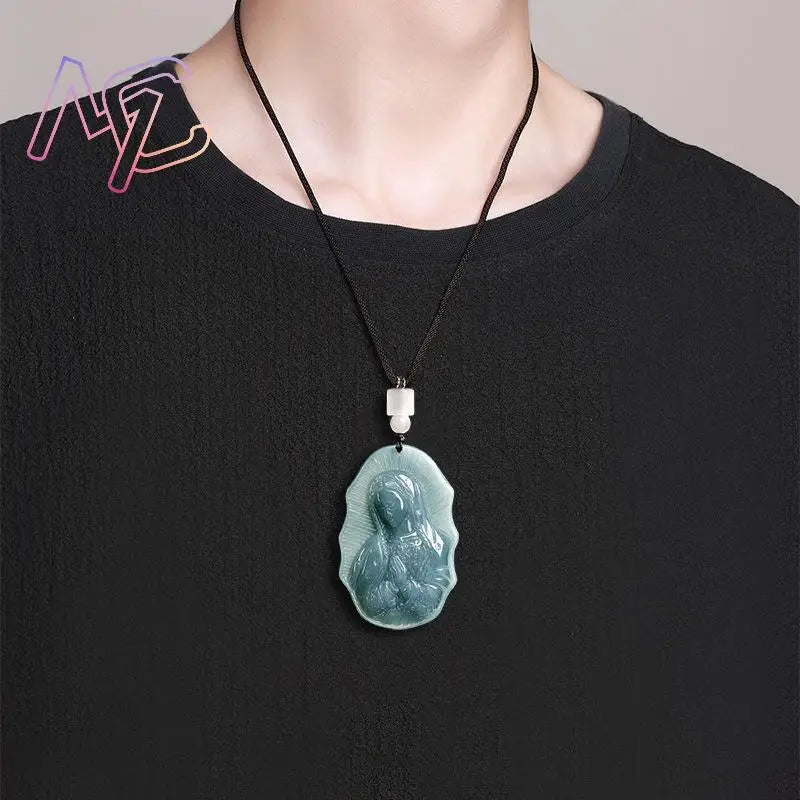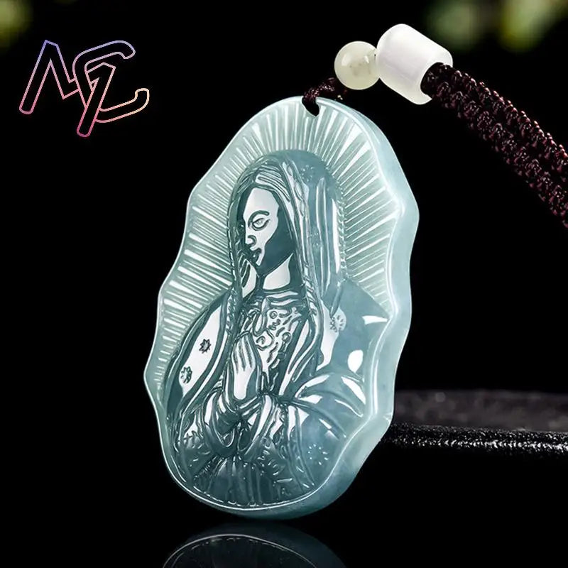 Blue Jadeite Mary Pendant