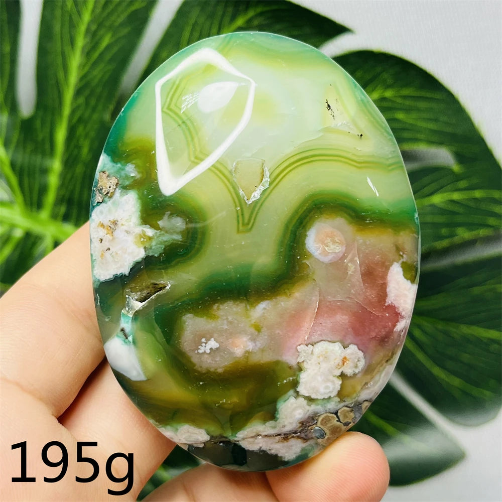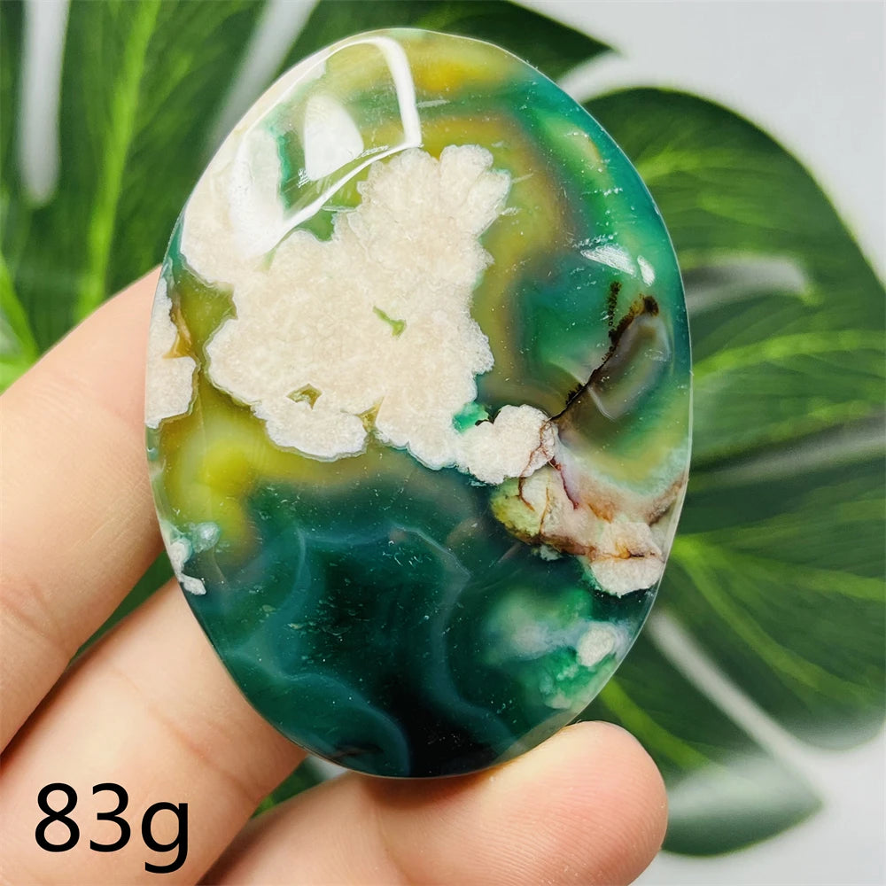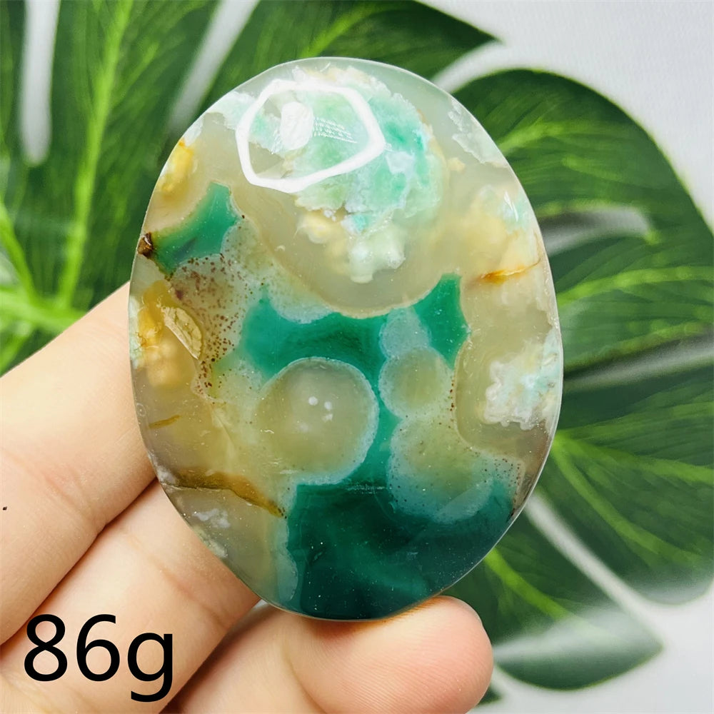 Green Flower Agate Palm Stone